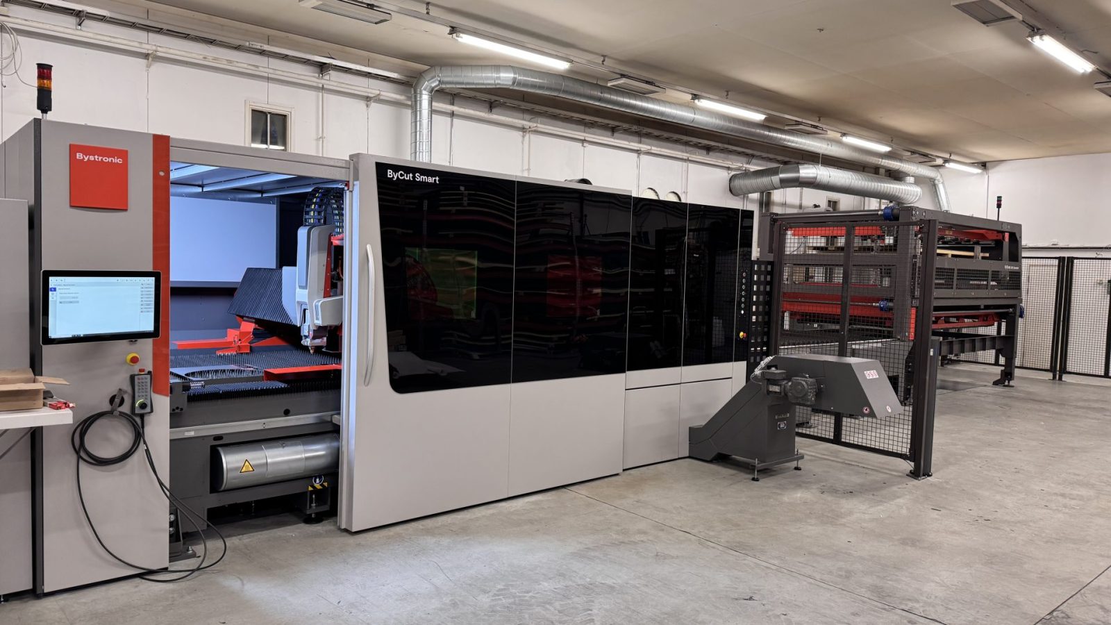 Sveitsiläisvalmisteisella Bystronicilla on mittaa viisitoista metriä. Jos tarve vaatii, se palastelee vaikka 30-millistä terästä ja alumiinia. Leikkuri osaa lastata ja purkaa ohutlevyjä omin päin, eli kone voidaan jättää illalla työskentelemään itsekseen.